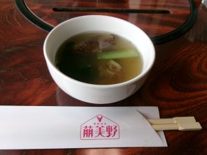 マイタケスープにも牛肉がはいっています。