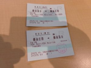庄原駅から備後落合駅まで片道510円。往復で買ったので1020円。