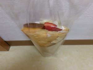 シュシュクレープさんの てのひらサイズ包むクレープ 生クリームいちご。